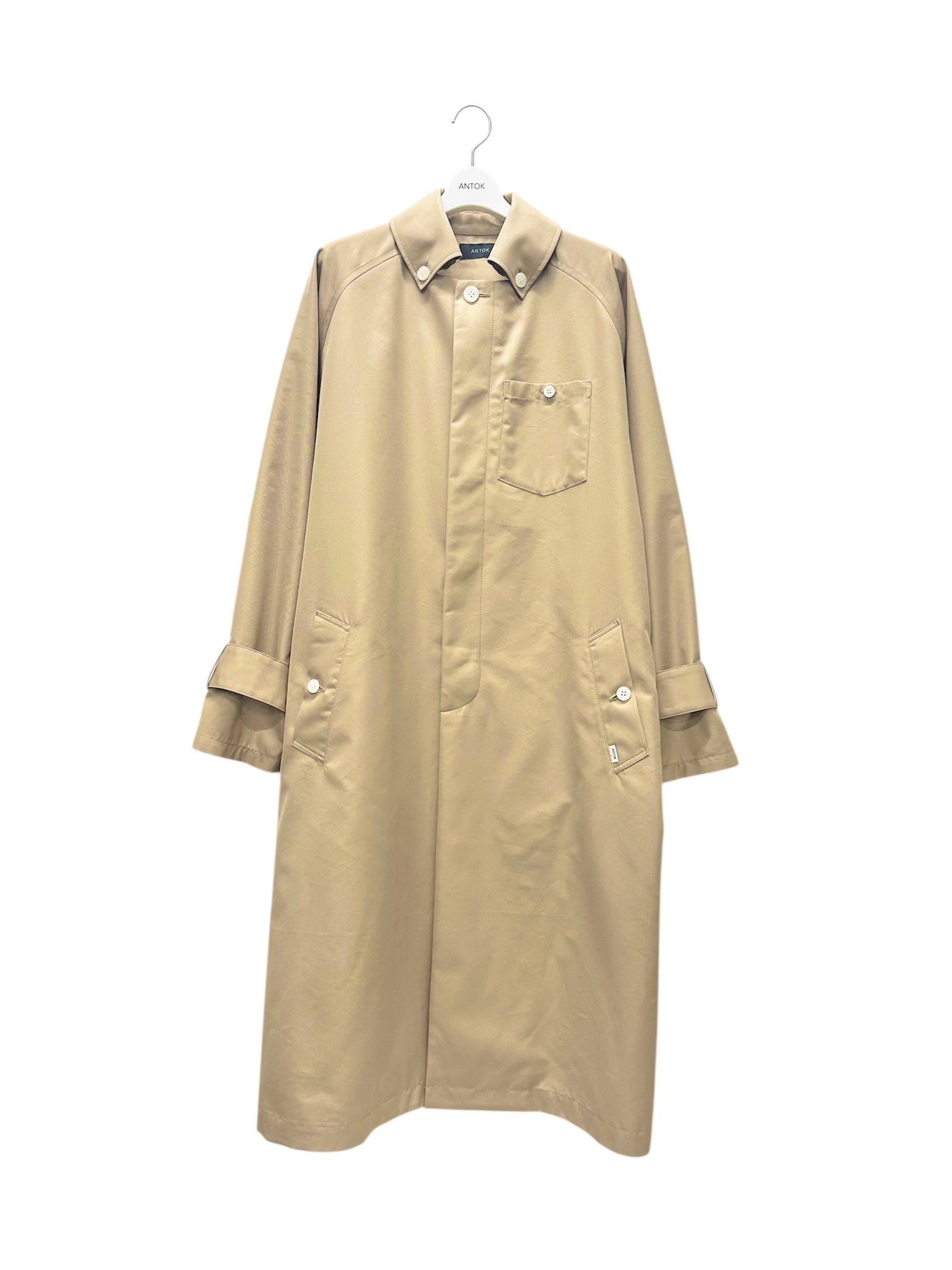 ドレステイストのコートに貝ボタンやボタンダウンカラー、ヨーク切り替え等のカジュアルテイストのシャツディティールを取り入れる事でテイストとアイテムの境界を曖昧にした見た目以上に細部にこだわりが詰まった新しい見え方のデザインです。