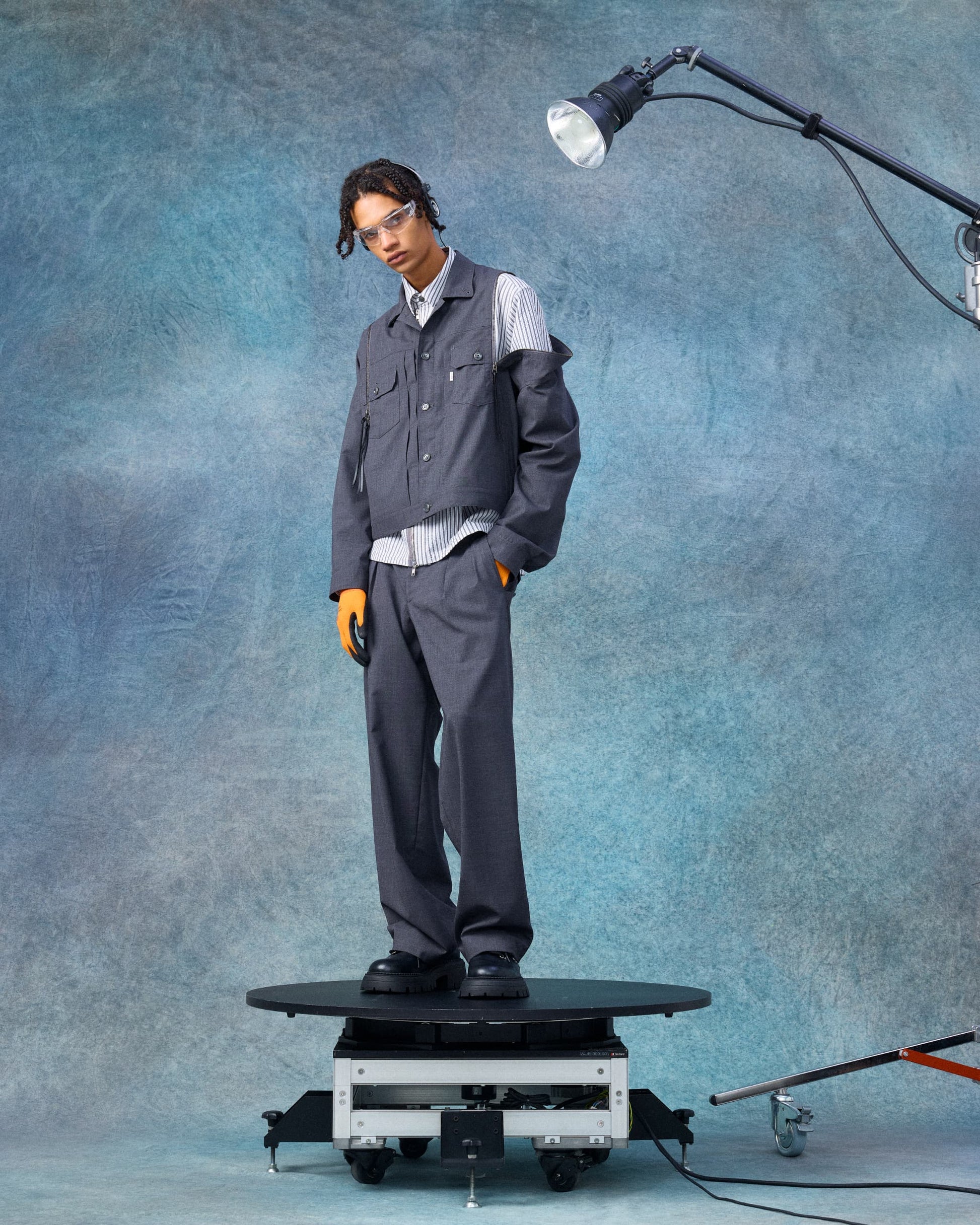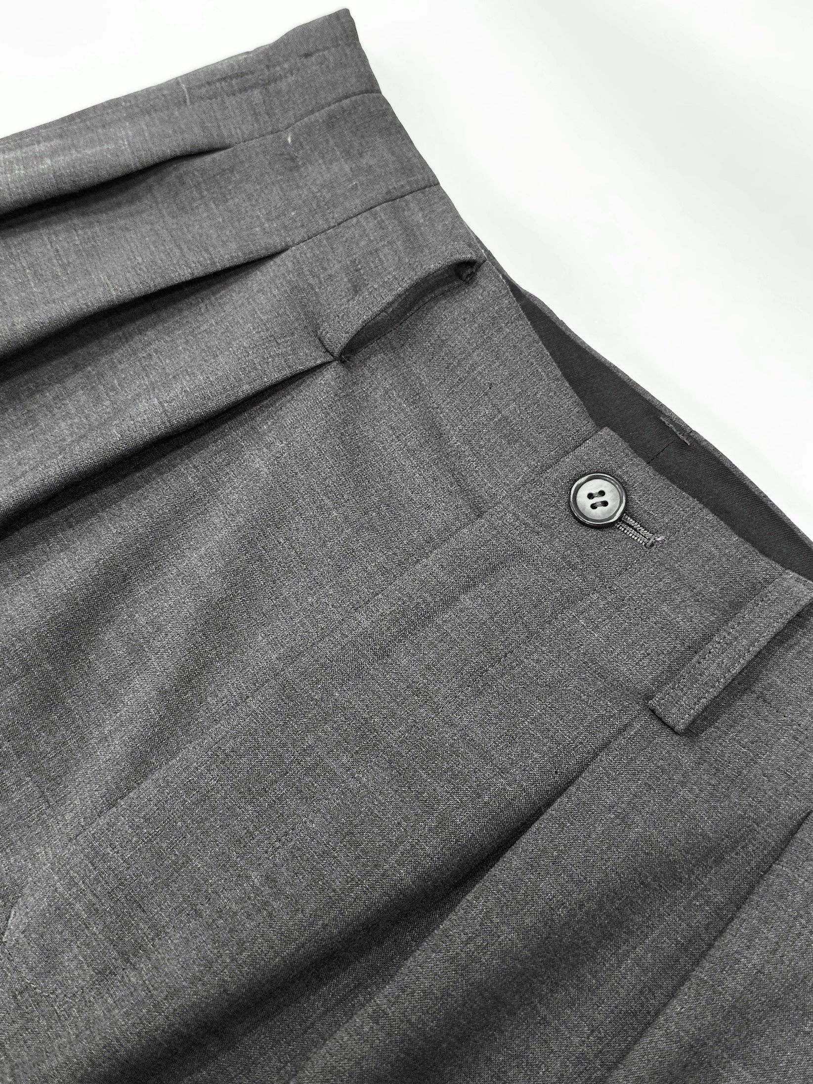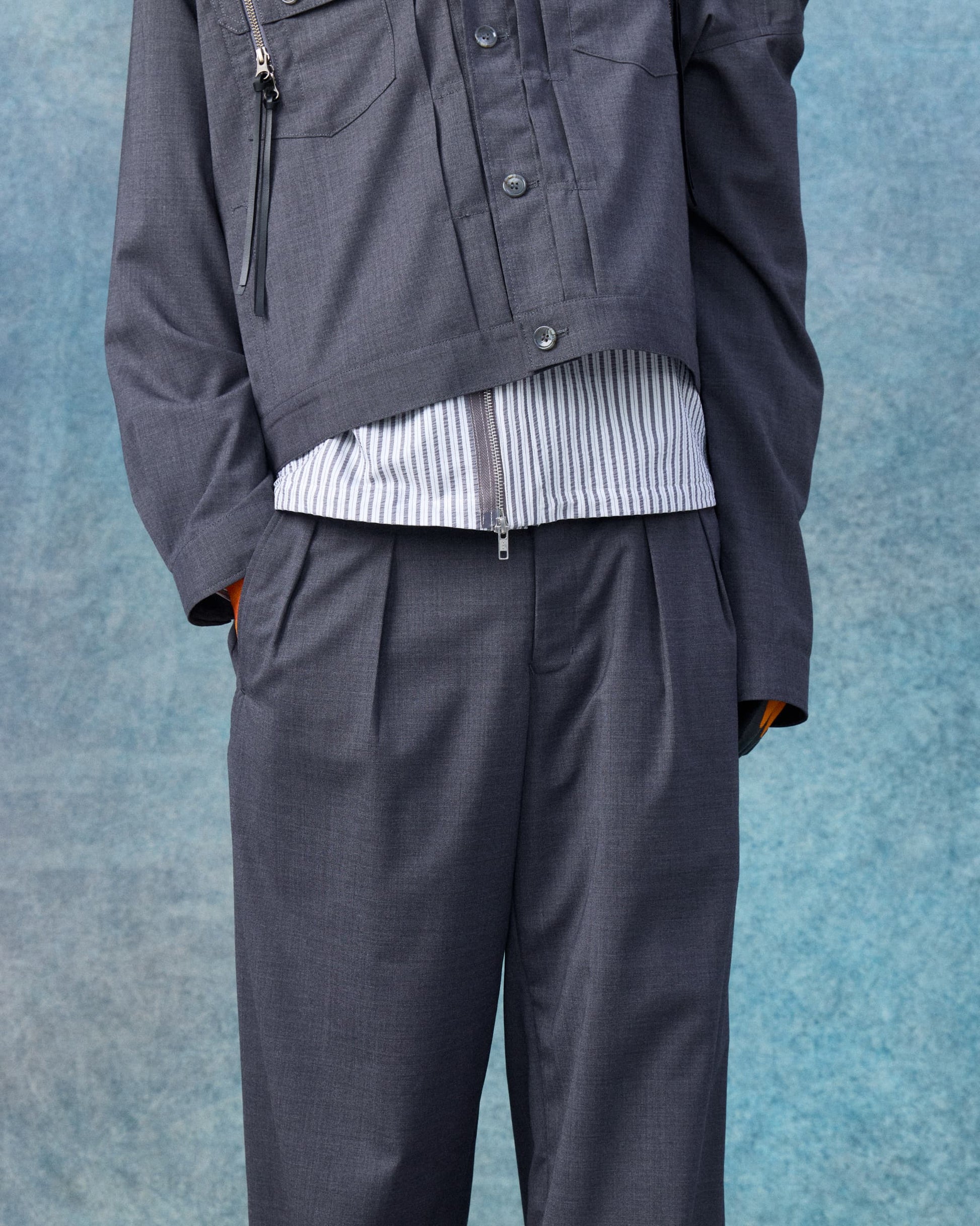ウエストは2タック仕様で分量がある為様々な動きに対応でき、センタープリーツを入れない事でドレスリラクシングな雰囲気にまとめております。