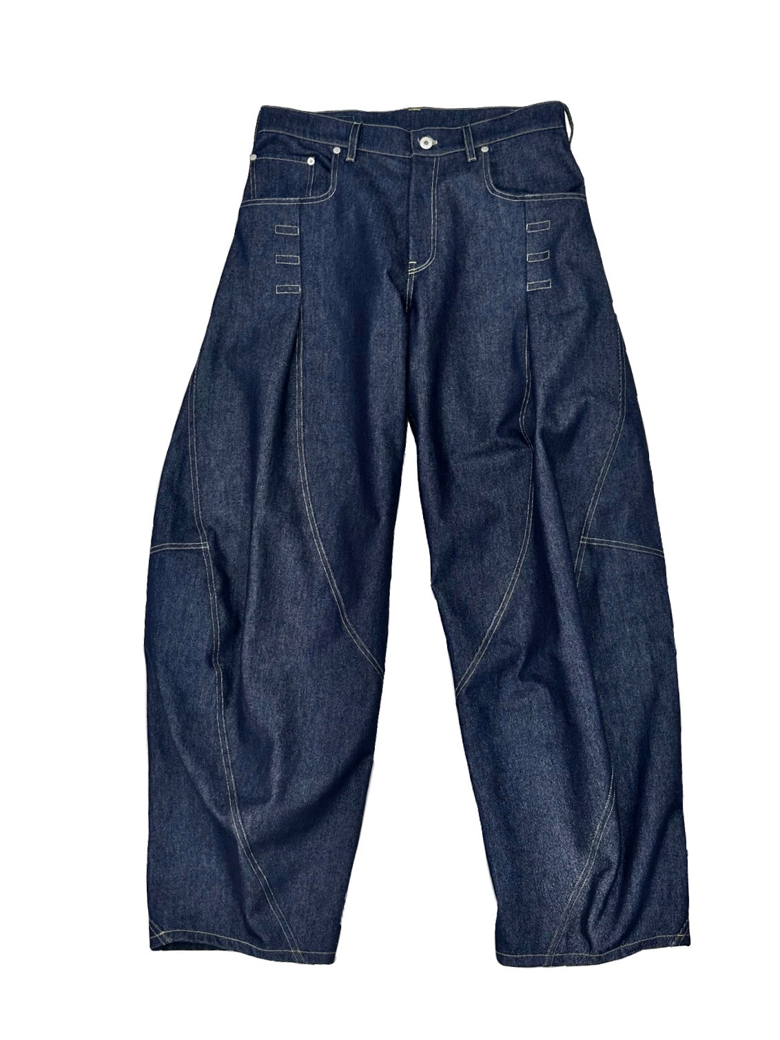 2ndモデルのデニムジャケットに見られるプリーツと押さえステッチをパンツに施し、着用した時に形が綺麗に出るよう計算したパターンになっています。